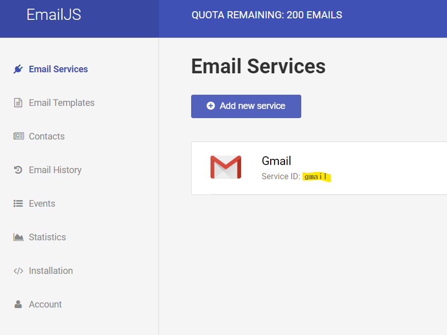 그럼 다시 emailJS로 돌아와서 'Installation'메뉴를 선택한다.