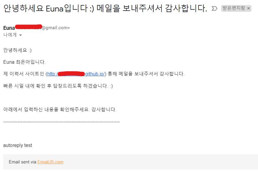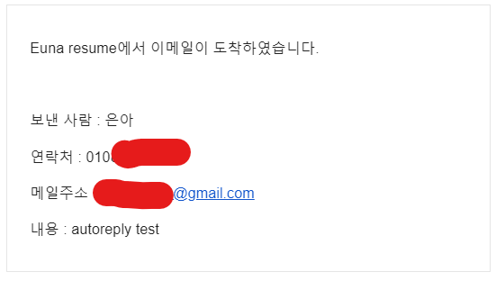 실제로 테스트해보면 보낸 사람에게도 이런 식으로 자동응답 메일이 보내진다.