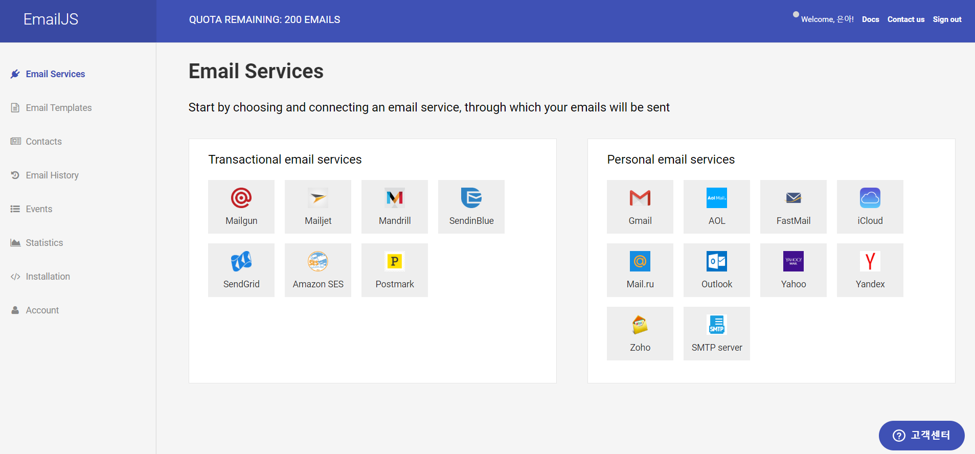 먼저, emailJS를 이용하려면 회원가입을 해야한다.