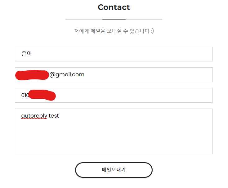 그 다음 메일을 보낼 양식을 설정하면 된다. 나는 아래와 같은 양식을 채우고 '메일 보내기'를 누르면 내 메일로