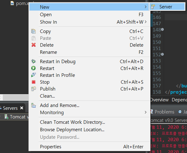 Server화면에서 마우스 우클릭 > New로 Tomcat을 추가해보자!